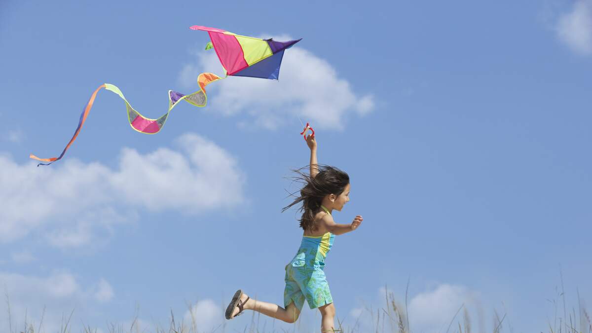Hispanic girl flying kite